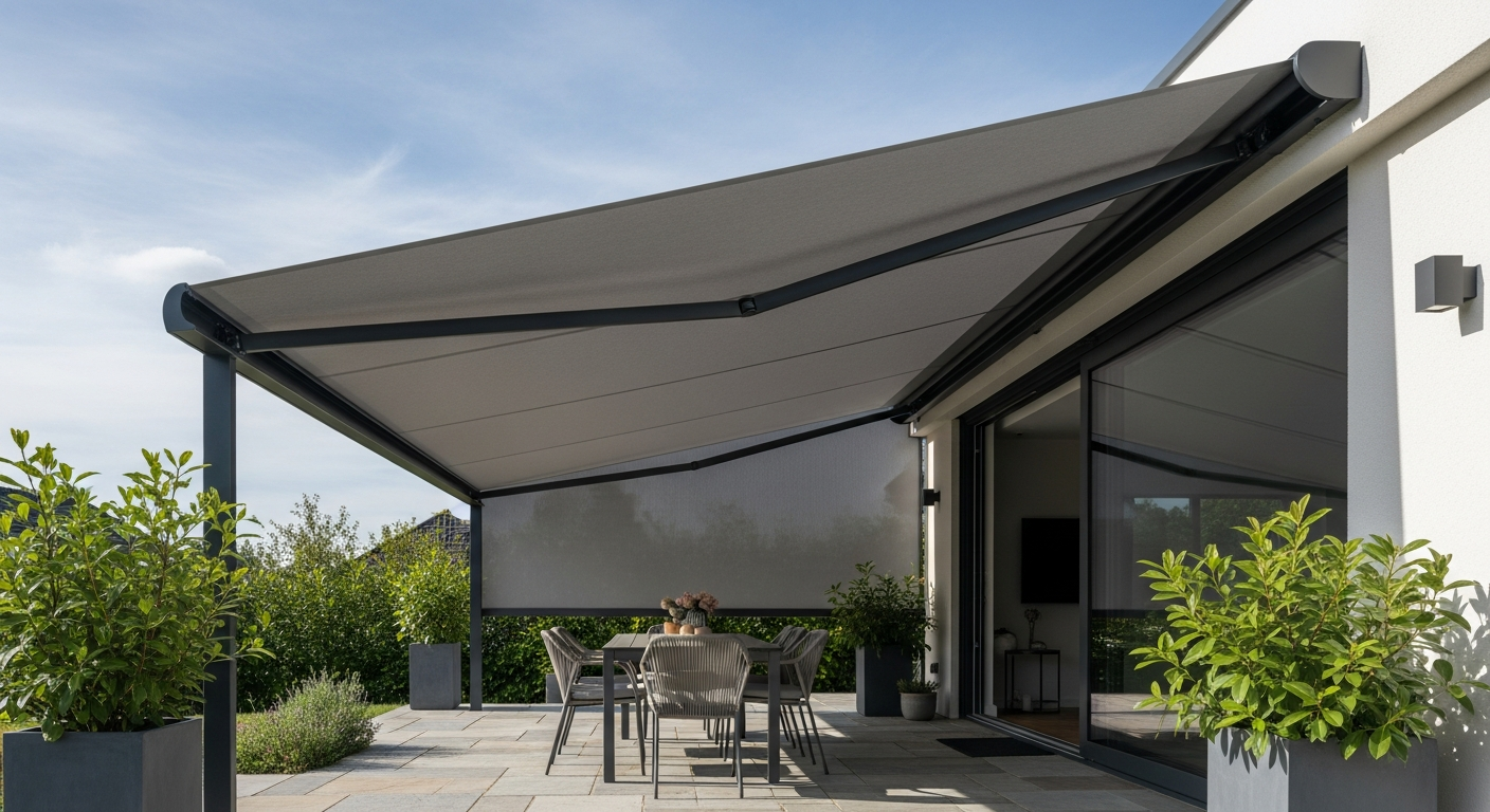 Aktuelle Trends drehen sich weniger um reine Optik und mehr um flexible Nutzung. Sehr gefragt sind Lamellendächer, bei denen sich der Lichteinfall steuern lässt: geöffnet für Luft und Sonne, geschlossen für mehr Schutz. Je nach System können Lamellen auch Wasser kontrolliert ableiten. Ebenfalls verbreitet sind seitliche Elemente wie Screens, Schiebeelemente oder Lamellenwände, die vor tief stehender Abendsonne und Wind schützen und zugleich Privatsphäre schaffen.